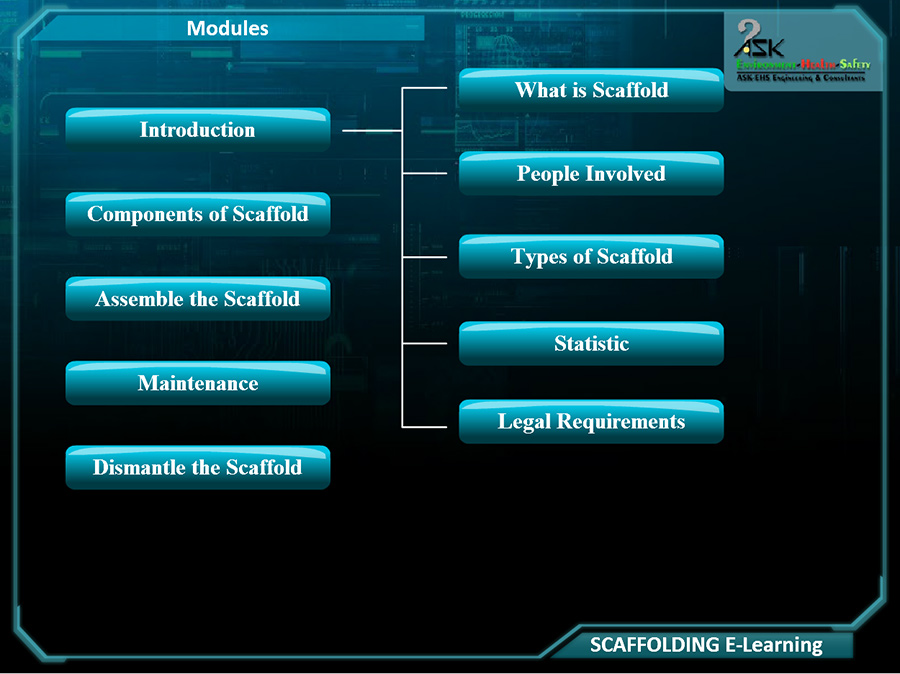 Scaffolding e-learning by ASK-EHS presents a quick learning process through various digital modes of learning. Currently, ASK EHS is offering the following e-learning programs on scaffolding;
