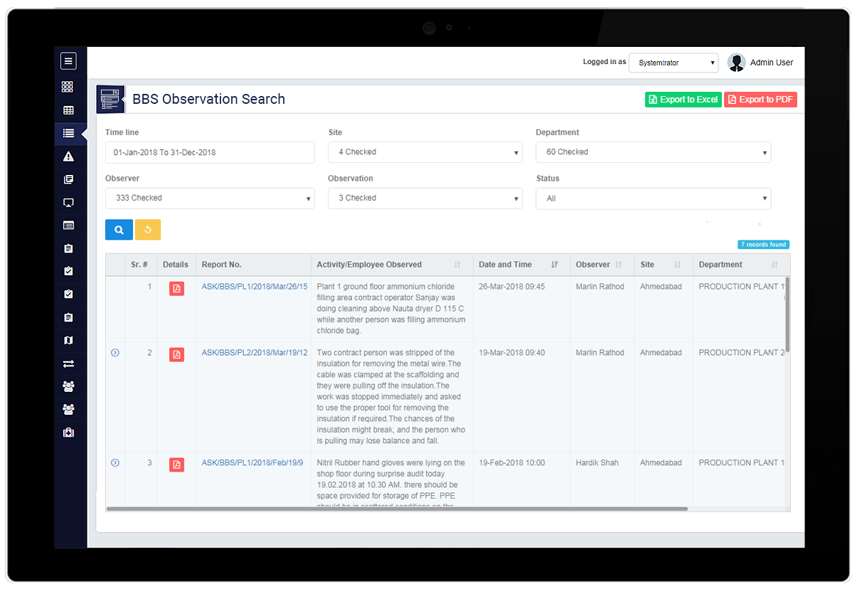 Most of the behavior based observations are reported in the context of field activities. Now, with no access of tools on the field, many observations go off unnoticed and unreported as such. ASK-EHS provides an integrated solutions with a Mobile App that helps report BBS observations right from the spot.