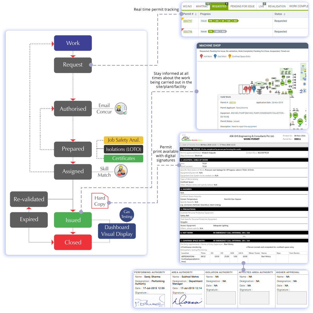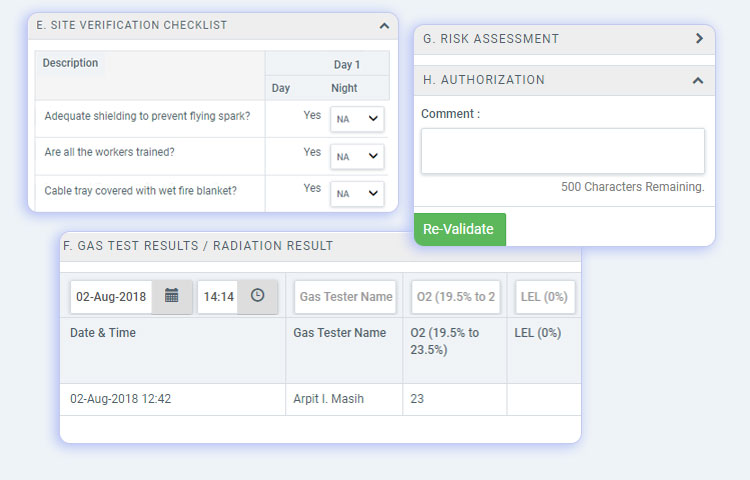 The PTW system includes digitization of performed activities of a permit-to-work system as enlisted below: