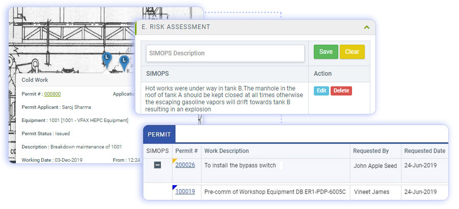 The Permit to Work software is designed to manage the process of issuing permits to work, which are required before any hazardous work can occur. It is an end-to-end digitized PTW process for various permit types, such as cold work, hot work, etc.