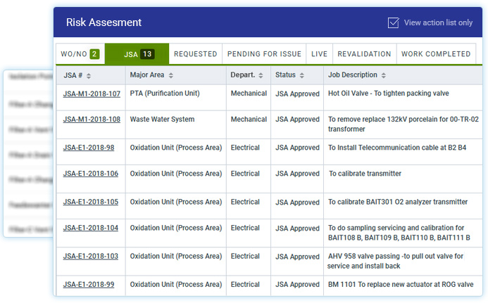 The process of JSA is lengthy and takes time as it requires the identification of the control measures and it also requires a procedure to be followed for approvals of the jobs to be carried out. With manual/paper procedures, filling up manual forms accurately, remains a challenge. Along with it, the approval procedures and real-time information of the job also remains opaque.